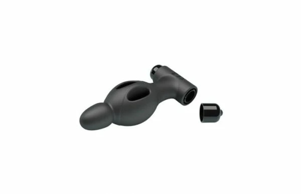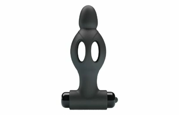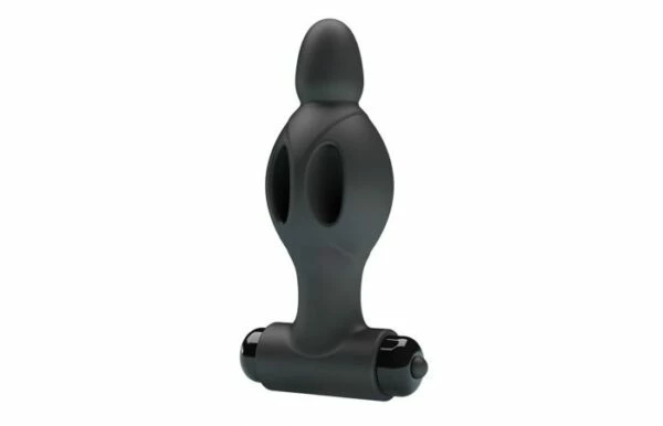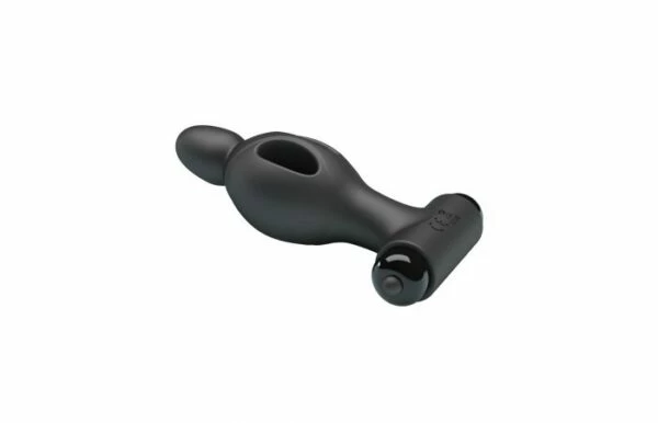 This black vibrating buttplug has a bullet vibrator at the bottom. When you press the button you can switch between the 10 vibration modes. The plug has a soft rounded tip with open design for smooth insertion.