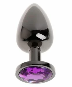 PleasureStore Large Grey Precious Metal Purple Jewelled Butt Plug