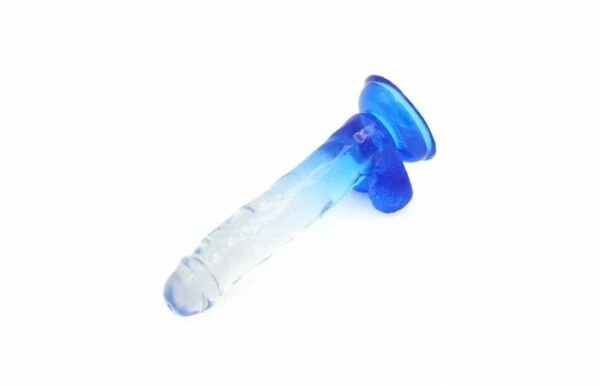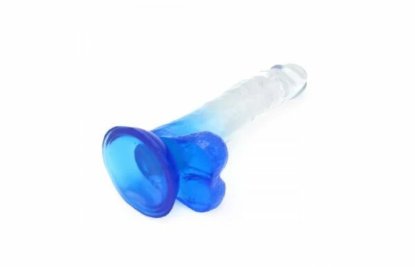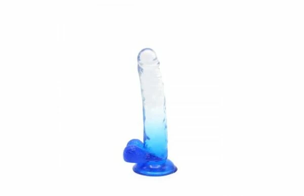• Beautifully designed, this blue jelly dildo has a crystal clear finish