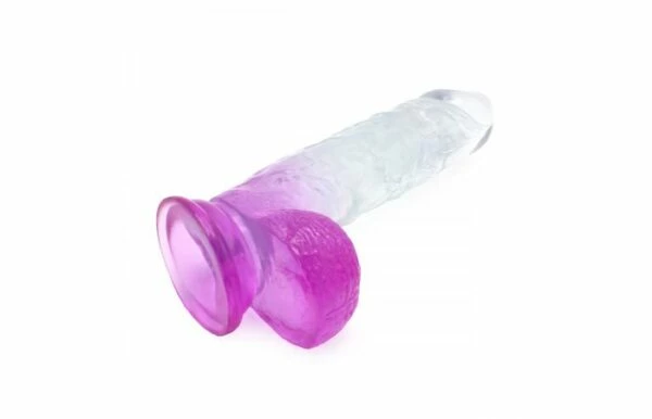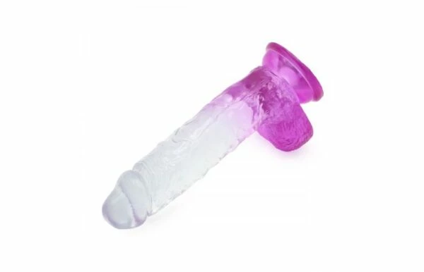 • Beautifully designed, this purple jelly dildo has a crystal clear finish