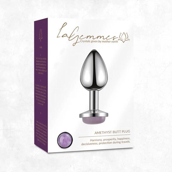 The La Gemmes butt plug is crafted from 100% gemstone and aluminium alloy and can be used during masturbation or anal love play. By using a butt plug during intercourse, sensations are heightened, and orgasms intensified. For men, use of a butt plug stimulates the prostate.