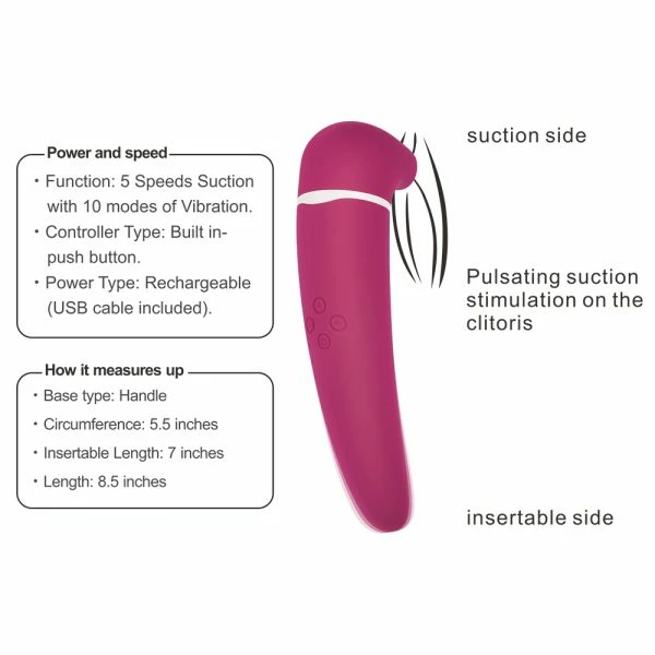 The unique design of this toy means that along with the intensely satisfying suction head, it can also be used as an internal vibrator, With 10 distinct pleasure patterns, It features a powerful vibration point on the tip meaning that you can direct vibration to your G-spot- the perfect way to reach an unparalleled, blended orgasm