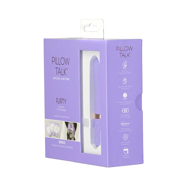 Pillow Talk is a collection that expresses beauty, fun and power with Flirty being the mini yet mighty epitome of excellence. The soft, silky smooth silicone body is flexible – helping the user to discover their every desire.