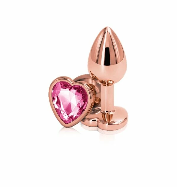 Sit on a throne of stimulation with the Medium Rose Gold Pink Heart Jewelled Butt Plug by PleasureStore. The rainbow colour certainly lives up to its regal reputation, giving the butt plug a high-quality look which matches the smooth, seamless metal. In place of a crown, the iridescent pink heart jewelled base glistens and shimmers as it catches the light.