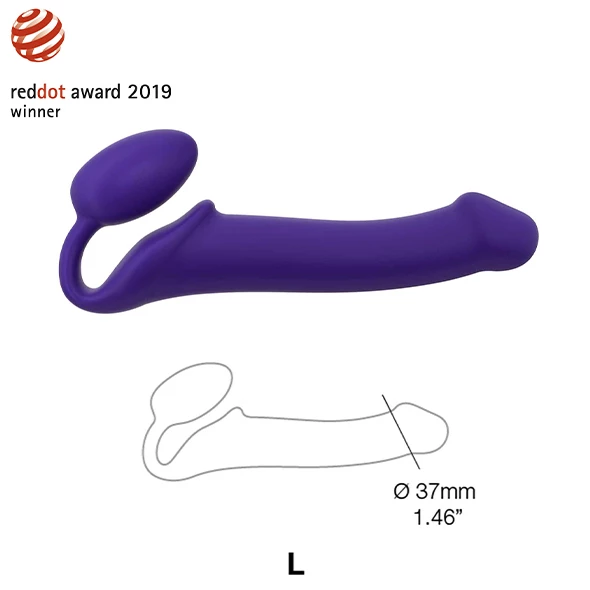 The non-vibrating strap-on combines an extra-soft silicone with a flexible neck with shape memory for unparalleled comfort. Easy to wear, it adapts perfectly to the anatomy and becomes one with you. Its innovative design, functionality and ergonomics have been awarded the Red Dot Design Award 2019.